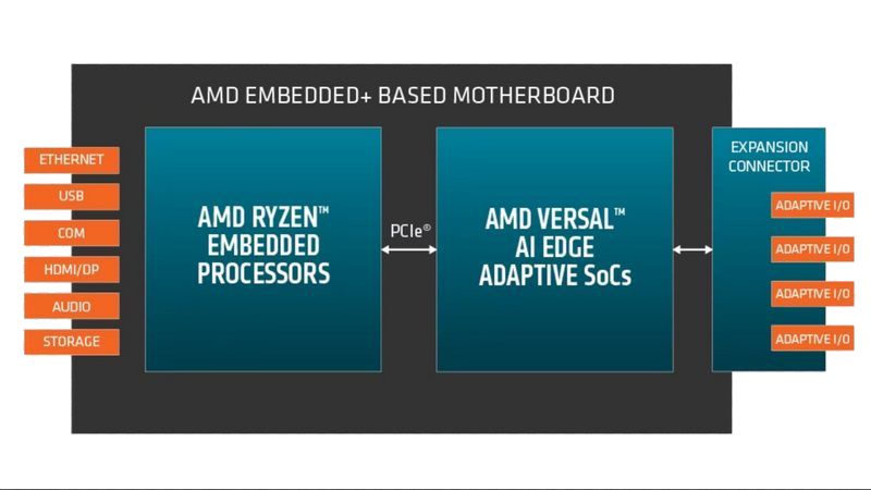 AMD je objavio lansiranje AMD Embedded+, novog arhitektonskog rešenja koje kombinuje AMD Ryzen Embedded procesore i Versal adaptivni SoC (System-On-Chip) na jednoj integrisanoj ploči, kako bi se isporučila skalabilna i energetski efikasna rešenja.