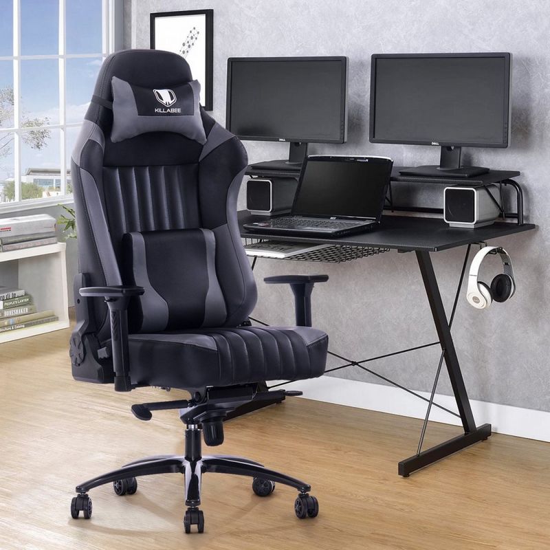 Imali smo priliku da testiramo stolicu koja pokriva sve te zahteve, pa čak i više od toga. U pitanju je gejmerska stolica, model KILLABEE 8212, izuzetno atraktivnog izgleda i fantastične prilagodljivosti. Ovo je jedna masivna i po gabaritima prilično velika stolica, sa čeličnom bazom, koja obezbeđuje veliku udobnost i podršku čak i za visoke i krupne osobe, kojima klasične stolice ne odgovaraju. Uostalom, KILLABEE 8212 ima nosivost od čak 181 kg, što je jedna od najvećih nosivosti među radnim i gejmerskim stolicama.