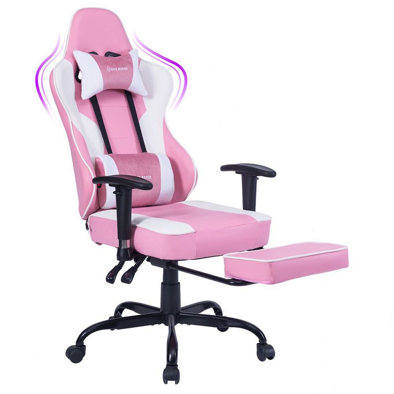 Ukoliko vam je ova stolica možda ipak prevelika, testirali smo još nekoliko jeftinijih modela od kojih svaki ima neku interesantnu karakteristiku. Gejming stolica VON Racer 8280 specifična je po činjenici da ima ugrađen vibracioni lumbalni masažer zahvaljujući kome možete da masirate donji deo leđa, smanjujući napetost tokom dugih gejming ili radnih sesija. Takođe, ovaj model ima izvlačivi potporni dodatak za noge, tako da omogućava da u stolici bukvalno prilegnete. Nudi se u više atraktivnih kombinacija boja, pa svako može odabrati šta mu najviše odgovara, a postoji čak i u kombinaciji roze i bele boje, koja je prvenstveno namenjena lepšem polu. Cena je 17.700 rsd.