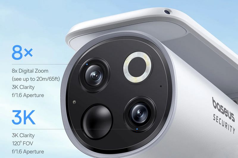 Uz to, kamere imaju 3K senzore, što znači da su snimci kristalno jasni i oštri, a za detalje je zadužena dodatna kamera sa 8x zumom. Obe kamere snimaju istovremeno, pa u realnom vremenu postoji mogućnost pregleda širokog i zumiranog snimka. Ugrađeni su i mikrofon i zvučnik, pa je moguća i dvosmerna audio komunikacija u realnom vremenu. Takođe, kamera poseduje infracrvene senzore za snimanje u mraku, a po potrebi moguće je uključiti i dodatno osvetljenje, kako biste dobili noćne snimke u boji.