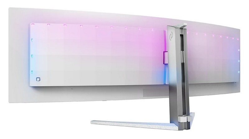 Osvetljenje monitora je 450 nita u HDR, odnosno 250 nita u SDR modu, što je u rangu ostalih monitora iz ultrawide klase. Naravno, ovako veliki monitor jednostavno mora da ima zakrivljenje, jer bi se u suprotnom slika na krajevima gledala pod mnogo većim uglom nego slika u sredini monitora. Da se razumemo, kod OLED monitora nema razlike u kvalitetu slike u zavisnosti od ugla gledanja, ali je svakako lakše za oči da se svaki deo monitora gleda pod uglom od (približno) 90 stepeni. Philips Evnia 49M2C8900 ima poluprečnik zakrivljenja 1800 mm, što nije previše ekstremno, ali je sasvim dovoljno da krajeve monitora blago približi korisniku.